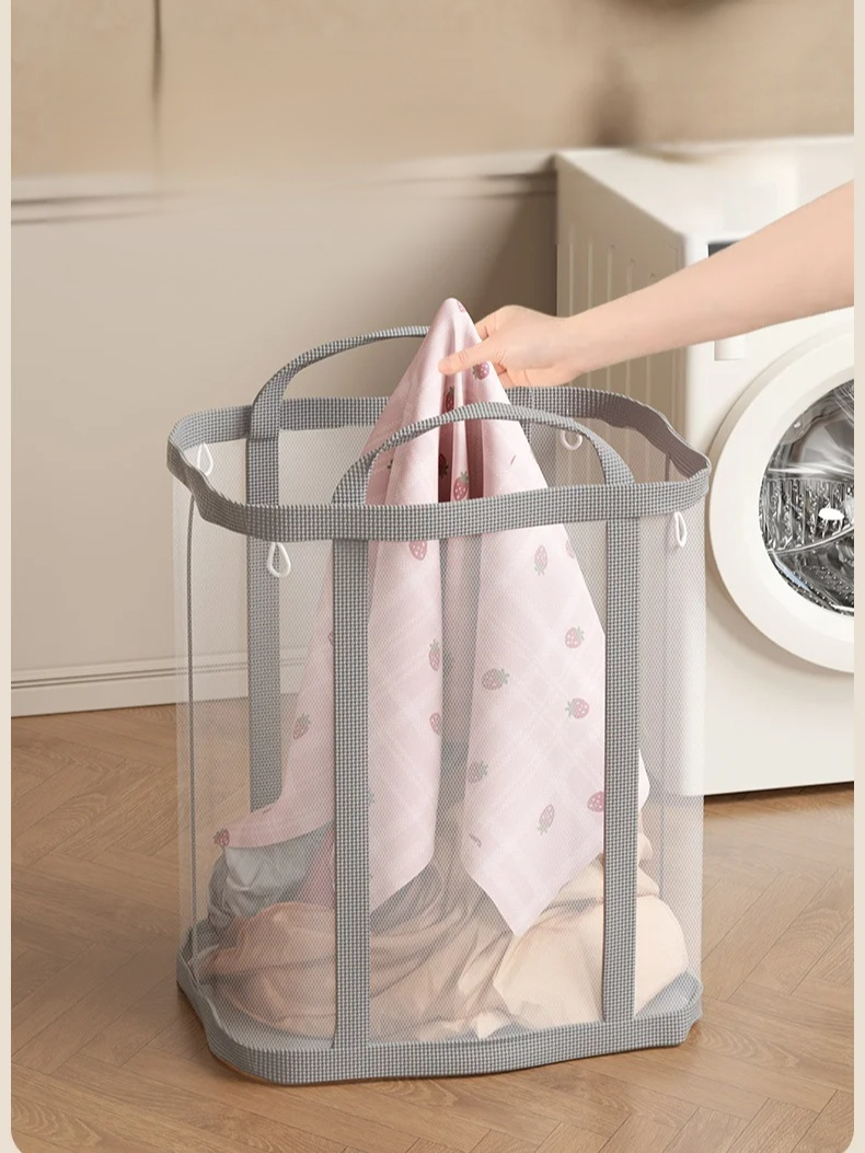Large capacity foldable storage basket for dirty clothes